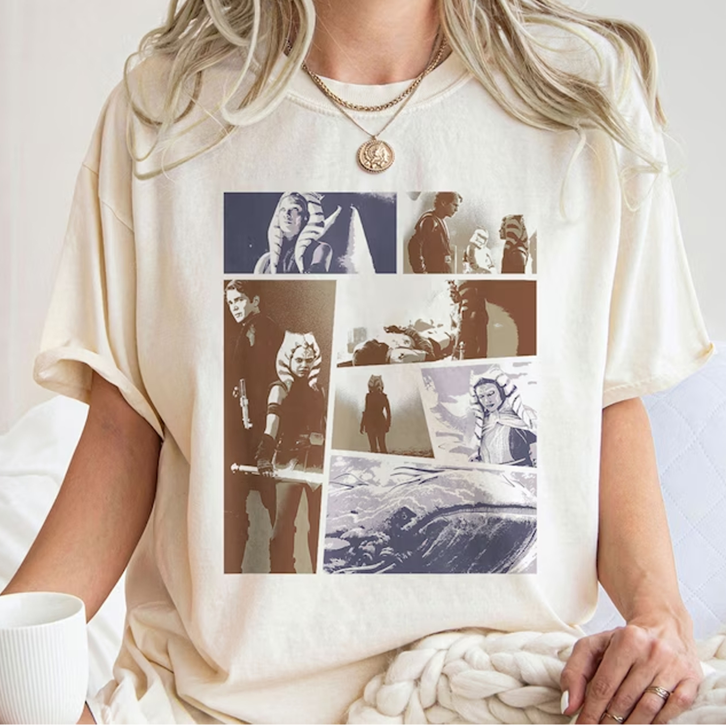 One of the biggest highlights is that its design uses retro-style panel illustrations. This style of pattern depicts the classic postures of Anakin and Ahsoka in detail, giving people the feeling of old film reels, making the wearer feel as if they are in the era of Star Wars. The panel-style design cleverly divides different pictures with a comic storyboard visual effect, capturing the dynamic relationship between the two characters. For fans familiar with the Star Wars story, such a design can inspire emotional resonance and evoke their memories of Anakin and Ahsoka's adventure journey in the galaxy.